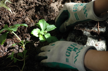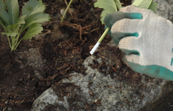 5. Remove stick, press dirt around cutting, and lightly mulch Press dirt and mulchthe ground around what you’ve just planted.