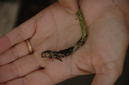 9. Three weeks later, because you’ve watered and waited long enough and can’t suppress your curiosity any longer, dig up one of the cuttings, and see that… yes! it worked! They are sending out roots. Feel rewarded. Be content.