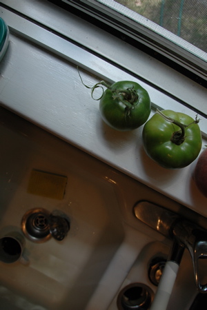 Bonsai picture by me. Tomatoes on sill by Eli.