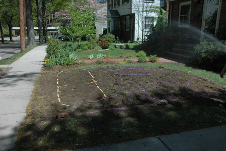 - a good-sized, bare patch in your yard that gets some sun. (Mine is a 10 x 10 spot on the front lawn that has never really sustained grass. Whiteside gave over a 35 x 35 square on a “boring dry slope of lawn” that she “tired of mowing.”)