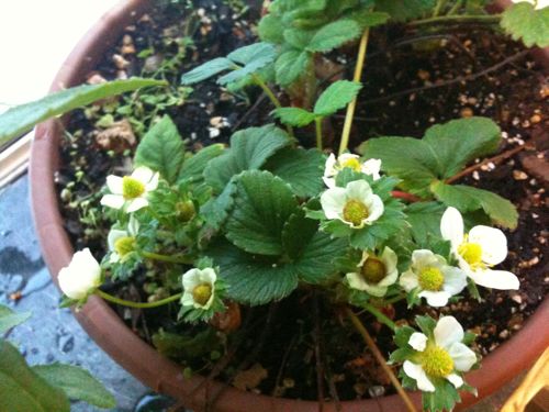 My officemates and I are turning our huge window and its sill into a greenhouse. In addition to some cactii, which are meant only as houseplants in New England, we brought in some of the spent container plants from our home porches back in October: fuchsia, geranium, sweet potato vine, and strawberries. All are thriving, and there are strawberry buds. Will we soon have red berries in Room 12-111? Stay tuned.