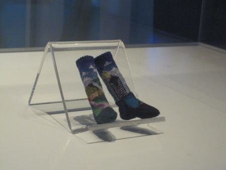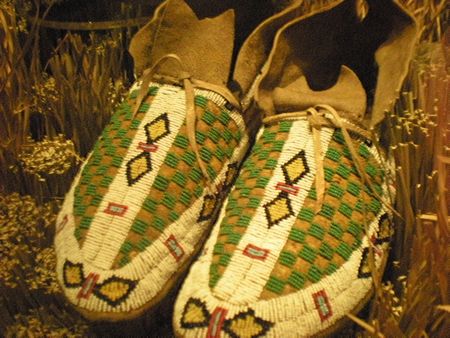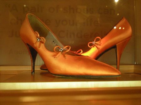 The shoe museum is for real, and probably one of the most interesting small museums I’ve ever been to, not just for the artifacts but for how they’ve been curated. The long history of shoes is a gendered one. Ornate, jeweled, and elevated shoes have always meant that their wearer is “free from everyday cares” and especially labor. In Europe both men and women wore high heels until around 1730, when men gave up the custom. Women were considered “irrational” and could wear impractical shoes. Men were “rational” and wore sensible ones. In 17th century Venice, women in chopines towered above others, so that they could be seen (rather than see, an important distinction). And while they were expected to wear the early version of platform shoes, women also had to “bear the brunt of criticism leveled against the wearing of them.” (That sounds like a familiar double bind.) The beaded shoes worn by First Nations People and Native Americans seemed much freer of gender and heel height distinctions.