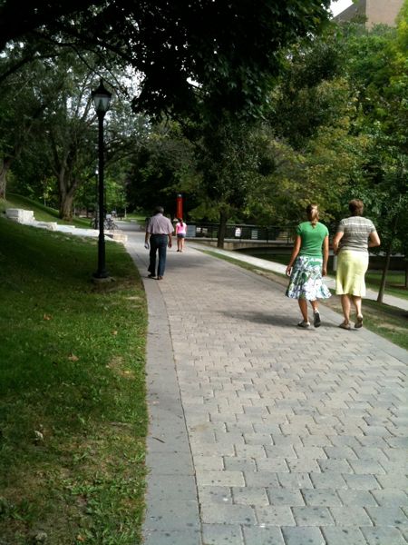 The next morning at the kids’ urging we grabbed food and coffee from the Tim Hortons across from our hotel and walked to the Bata Shoe Museum, skirting Queen’s Park, idling up Philosopher’s Walk, and passing in front of the Royal Conservatory.