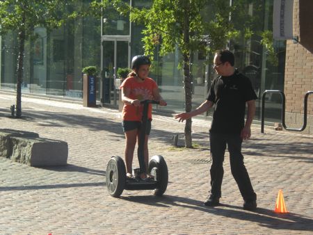 The CN Tower was next door, but a family squabble prevented us from unifying enough to follow through and go up. Mid-afternoon, the sun was iron hot, and our long walk to the Distillery District seemed like a test. There, Eli wandered around, Lydia and Grace took a Segway lesson, and we ate at the Mill Street Brewery. Jane (that’s me), on the way out, uncharacteristically bought a six-pack of the restaurant’s stock ale, or “patio beer.” Eli, who had sampled it from his mother’s glass during dinner, validated the choice: “It has a nice aftertaste.”
