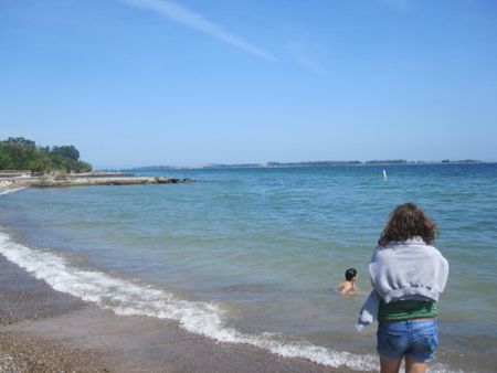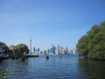 Last summer we spent a week in Bar Harbor, including a day biking on the carriage roads in Acadia. That day was a low point in our parenting history. Grace, overwhelmed by the hilly trail and road-to-nowhere woodsiness, had cried almost the entire route around Echo Lake (seven miles?), a test of Jimmy and my patience as well as persuasive skills. (“No, you’re not going to die. Let’s just pedal around the next bend and see where we are,” times 20.) So this summer we decided, not blithely, to test our skills and Grace’s new maturity, and take the 15-minute ferry to Toronto Island Park and rent five bicycles. Which we did. There was no crying. Perhaps the pleasure of that day — sunshine, flat terrain, sand beaches, bicycle-only roads, shade trees, lunch at The Rectory Cafe, and a ride on the carousel — had as much to do with parental relief as it did with family recreation. Still, it’s beautiful there, another city like Chicago, San Francisco, or Boston for that matter where the waterfront is as much a feature as the downtown. (And Toronto’s is an island.)