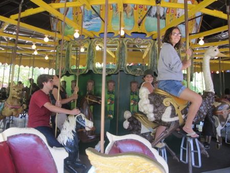 Grace wanted to go on the rides. Eli said, "We're not really an amusement family." We went anyway. On the carousel, the prophet said, "Hey, this is fun!"