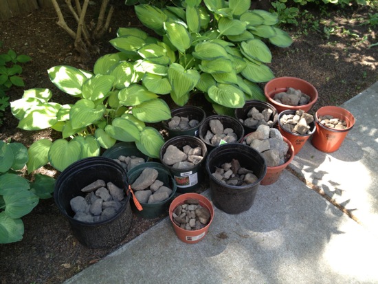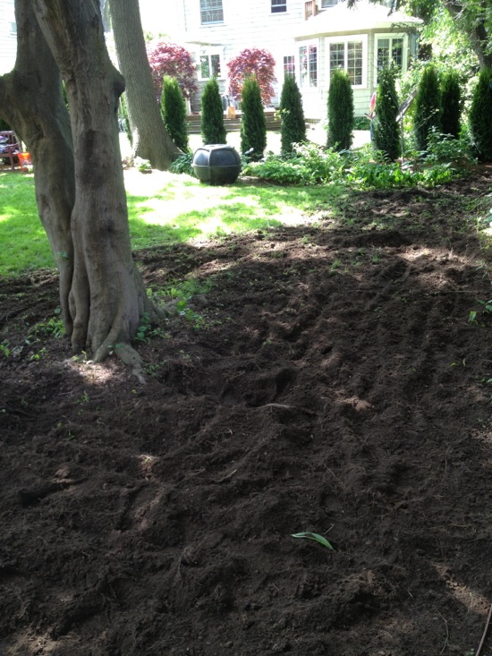 Now we need some help from nature: sun, rain, root development, and for those 20 hostas, five trillium, three ferns, grass, and ground cover to settle in and GROW.