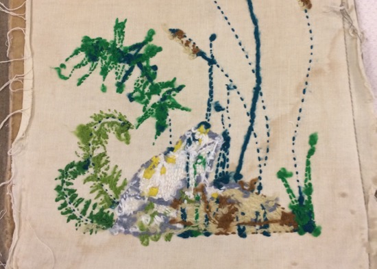 I don’t think Adrienne Rich’s poem conveys that, what pleasure her Aunt Jennifer might have found in the work. The aunt’s finger is “fluttering through her wool,” as though it lacks substance or deliberate action. If you sew or knit or crochet, you know the mind it takes to become immersed in the work and do it carefully. To what end, though? Certainly, the process is engrossing, and I love the concentrated effort, the specificity of small motor skills in play, and the freedom of the mind to think other thoughts once the needle is on its path to fill the leaf shape or trace the long line of a flower stalk.In mending, there is the pleasure of the effort to understand how something is constructed and then reconstructing it with the available tools and ability. Restoring something feels like an expression of power and ingenuity.