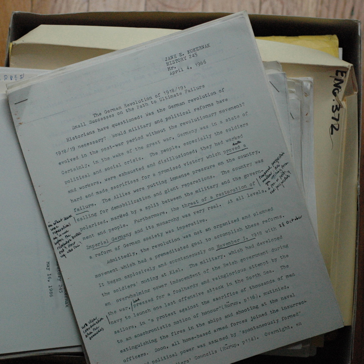 With Lydia, my college-age child whose winter break coincides with mine, I am cleaning out our Little Closet of Horrors. It is a home storage area that makes me shudder and mentally throw up a brick wall of denial every time I open it or think about it. Too many bath towels, three aerobeds (why three?), out-of-use curtains, and boxes and boxes of family photos fill this closet.