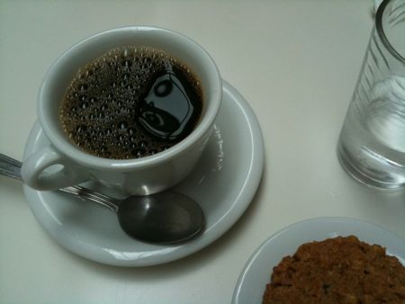 Picture-perfect coffee drunk by me at b espresso, Toronto, in August 2010.